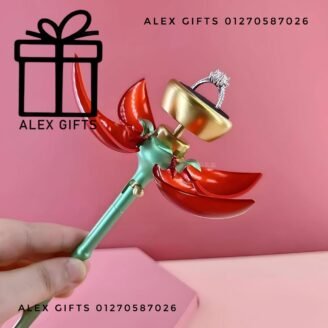 وردة تفتح بزر موجود بأسفلها ليظهر الخاتم الوردة للتقديم فقط ولا تشمل سعر الخاتم